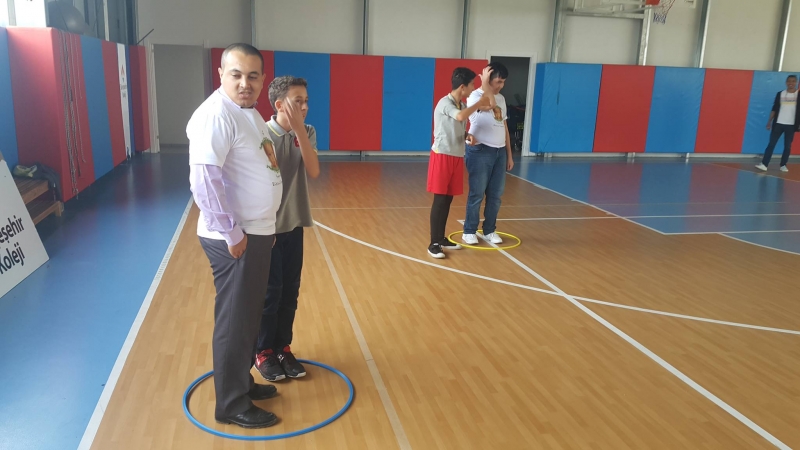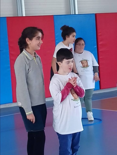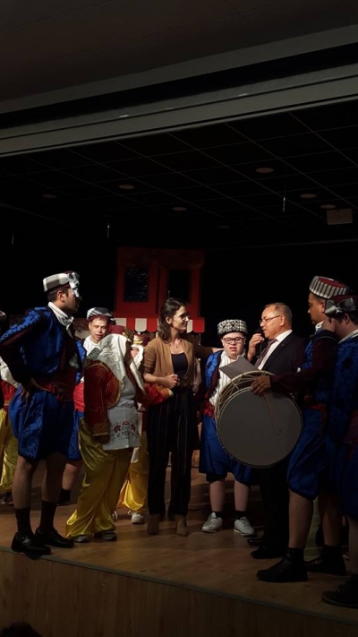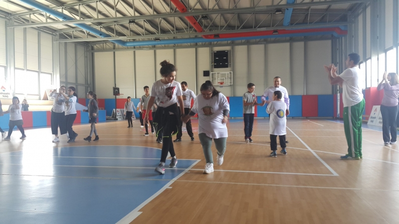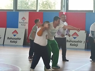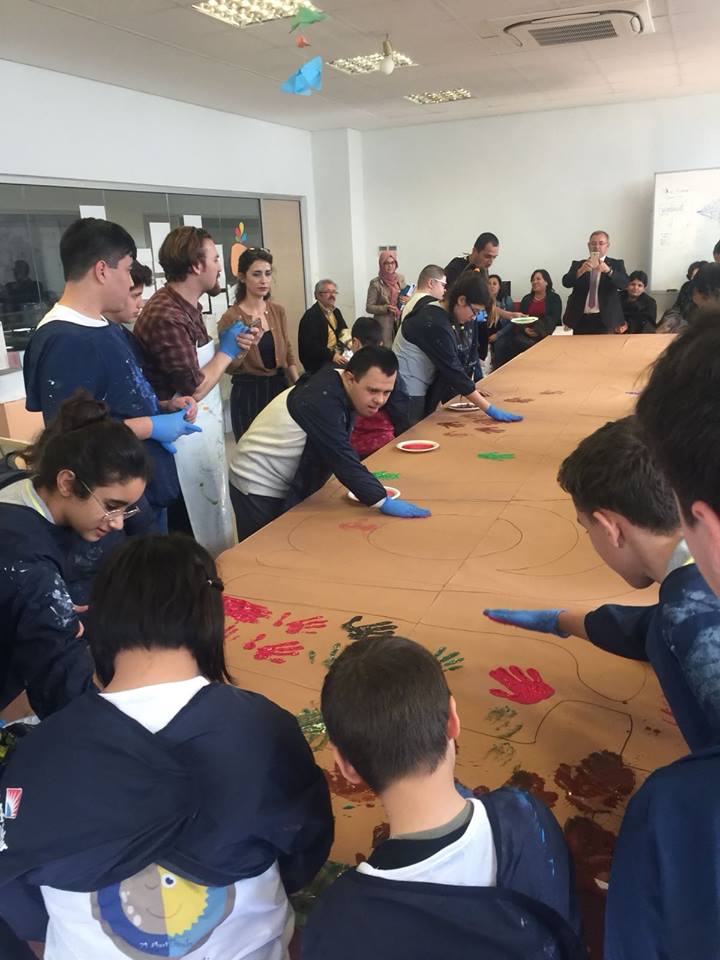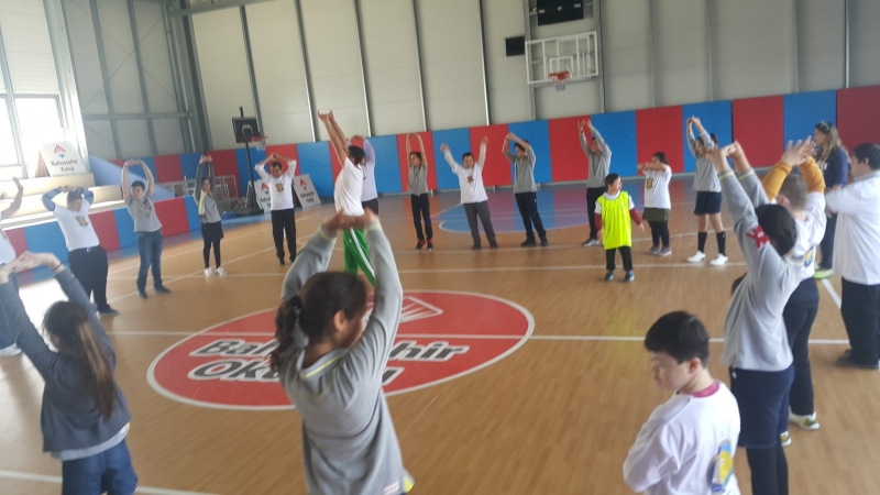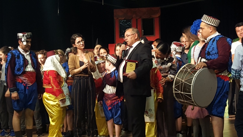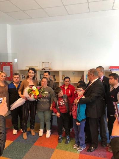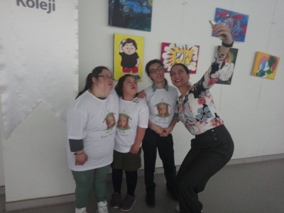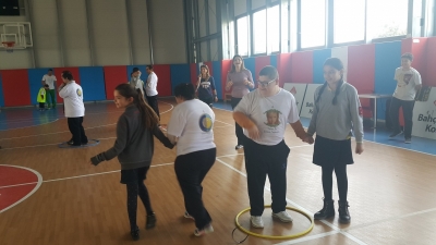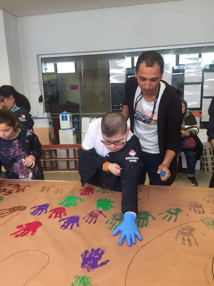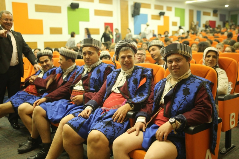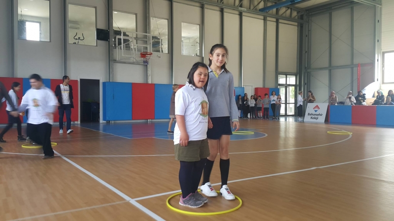 Muğla Zihinsel Engelliler Derneği Bahçeşehir Koleji Sosyal Bilgiler Bölümünün organize ettiği sosyal sorumluluk projesi kapsamında; Down sendromlu öğrenciler, aileleri ve dernek yetkilileri ile okulumuza bir ziyaret gerçekleştirdiler. Misafirlerimiz ile birlikte önce okul kütüphanemizde bir tanışma toplantısı gerçekleştirildi. Ardından görevli öğrenci ve öğretmenlerimiz misafirlerimize eşlik ederek Beden Eğitimi salonundaki aktivitelere katıldılar. Bir arada oyunlar oynayan öğrenciler "Bir bütünün parçasıyız" yazılı tişörtleriyle keyifli dakikalar geçirdiler. Beden Eğitimi salonundan Sanat atölyesine geçen öğrencilerimiz Görsel Sanatlar öğretmenlerimiz ve görevli öğrencilerimiz ile birlikte yaptıkları el baskılarını atölyede hatıra olarak sergilediler. Ardından öğlen yemeklerini yiyen öğrencilerimiz okulumuz Müzik öğretmenlerinden Aybüke KARAKULLUKÇU'nun yazıp yönettiği, öğretmenlerimizin sahneye koyduğu "Tatlı Operam" isimli oyunu izlemek üzere konferans salonuna geçtiler. Oyunu büyük bir ilgiyle izleyen öğrenciler, oyun sonrasında bu kez kendilerinin bizler için hazırladığı Halk Oyunları gösterisini sundular. Dakikalarca ayakta alkışlanan öğrenciler salona duygu dolu anlar yaşattılar.