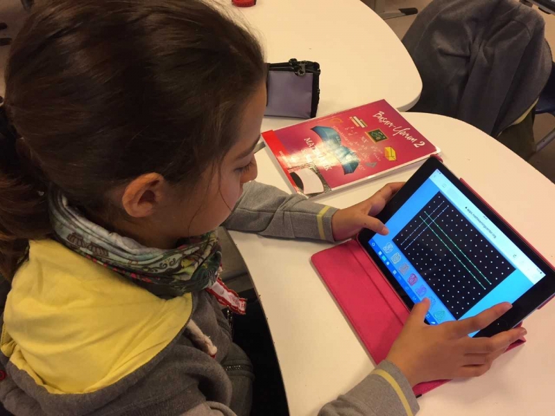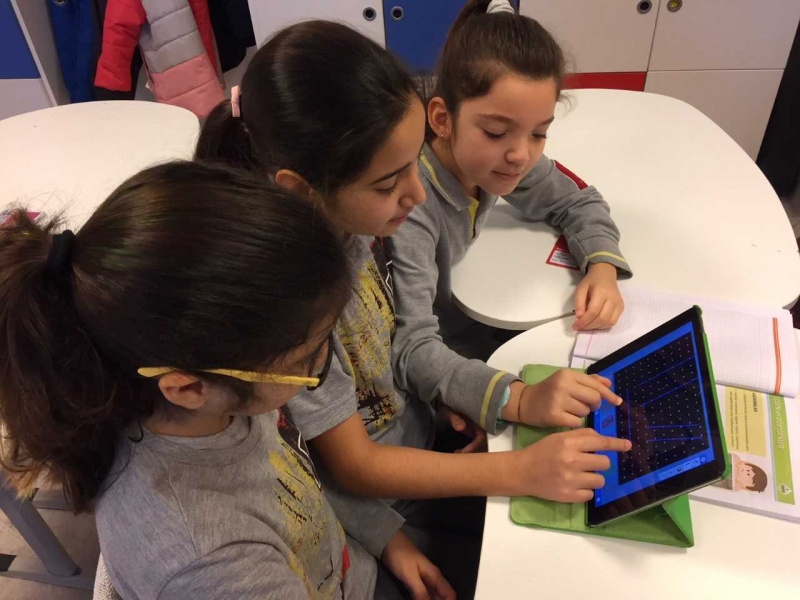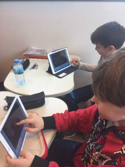 5. sınıf öğrencilerimiz bu hafta matematik dersinde “Temel Geometrik Kavramlar ve Çizimler” konusu kapsamında Ipad'lerini aktif olarak kullanmaya devam ediyor. Geoboard uygulaması ile paralel doğru, çakışık doğru, dik kesen doğru gibi öğrendikleri kavramları Ipad uygulamaları ile pekiştiriyorlar. Hem eğlencenin hem öğrenmenin tadını çıkarıyorlar.