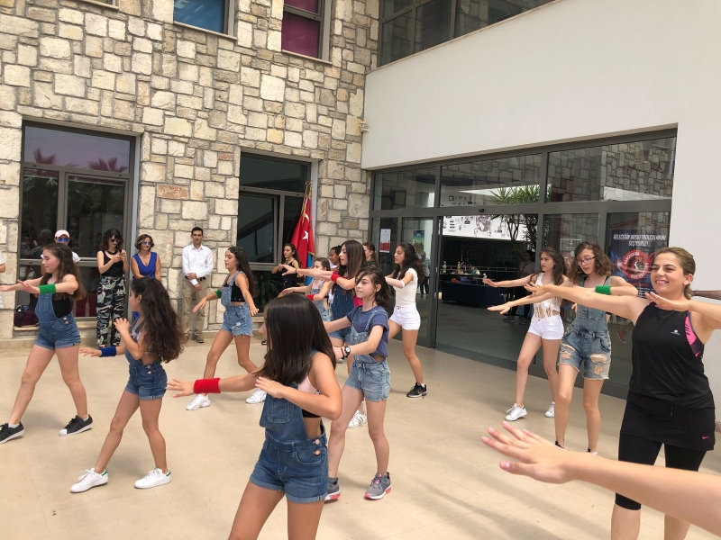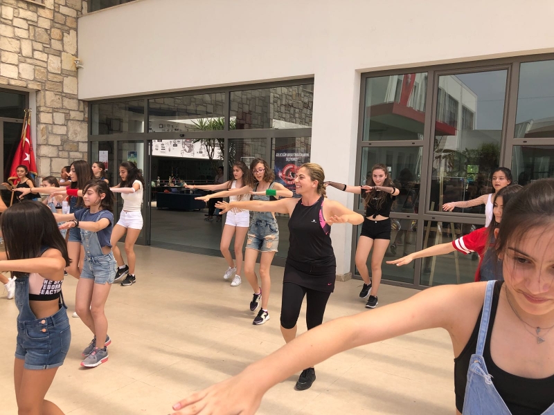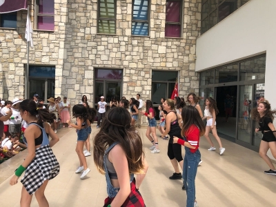 Öğrenciler, öğle molasının ardından ise spor etkinlik ve yarışmaların yanında çeşitli müziklerle de bahçede ve spor merkezlerinde dans ederek günü bol eğlence ve aktivite ile bitirdi.
